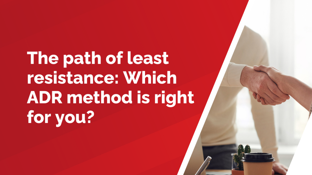 The ADR method you choose should be based upon your specific circumstances and the resolution you hope to reach.